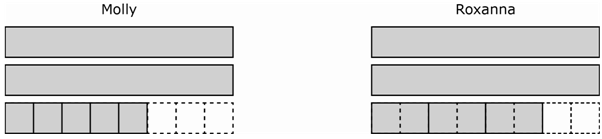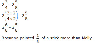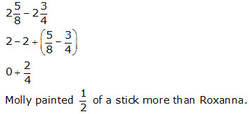 Molly and Roxana each had three wooden sticks to paint during art class. The model below is shaded to represent the fraction of the sticks each girl painted.