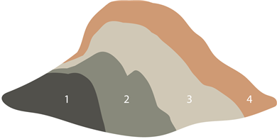 The figure below shows the rock layers in a hill. Which rock layer will have the oldest fossils?