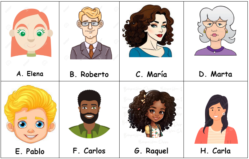Sebastian is describing his family. Read each description and match the family members according to their physical descriptions.