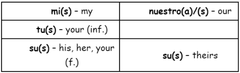 Yo tengo una familia de diez personas. _________ familia es muy grande.