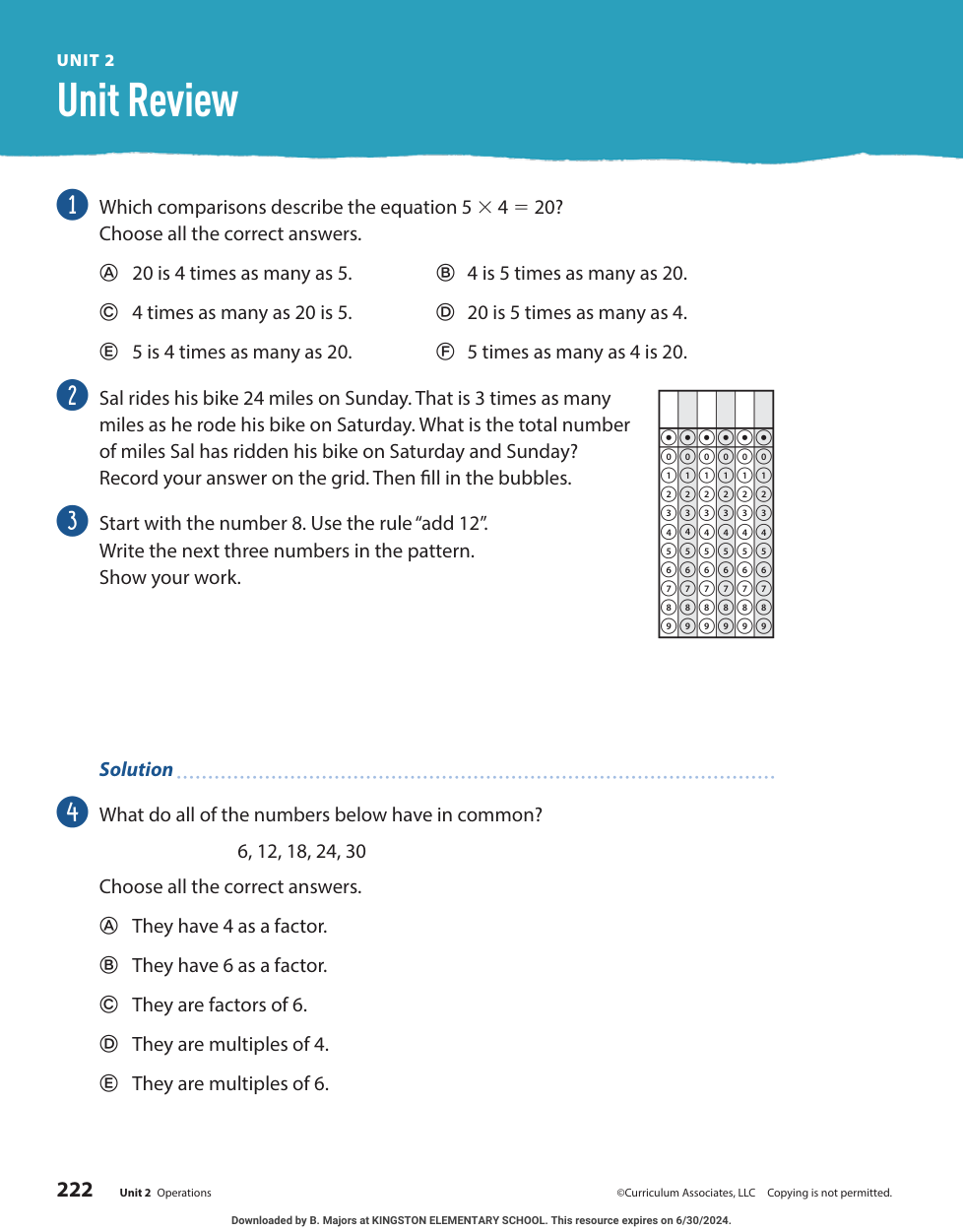 4 Unit 2 CFA Operations: Multiplication, Division, and Algebraic Thinking