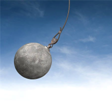 A wrecking ball is a large, heavy pendulum. Sven is still learning to operate the machine, and he sometimes misses his target. As a wrecking ball swings out and back, which of the following is NOT true?