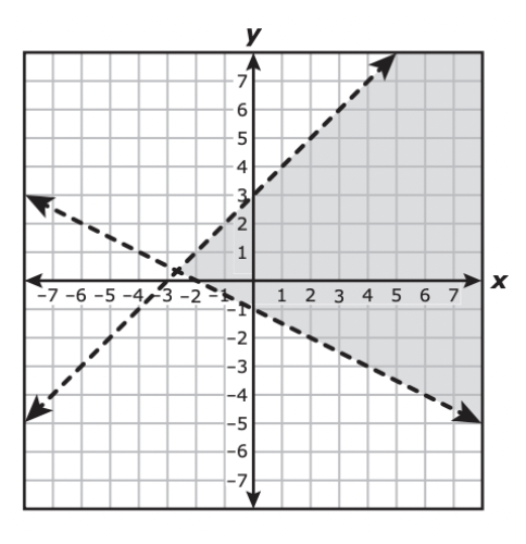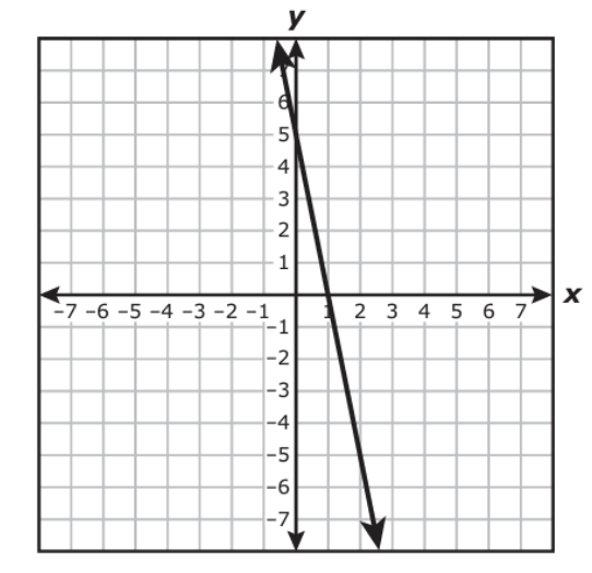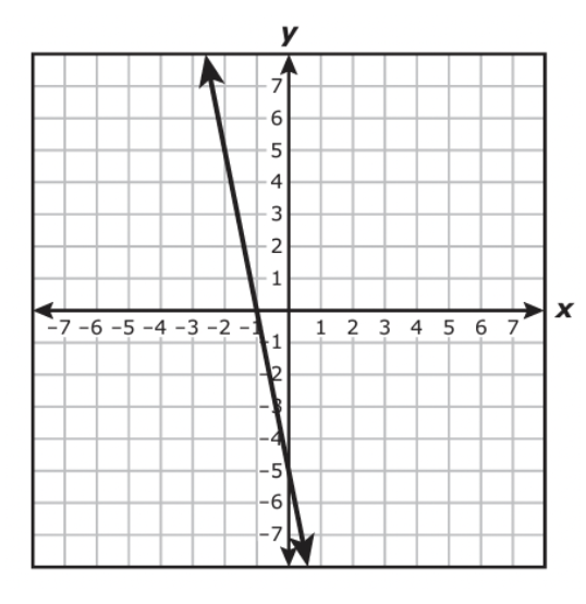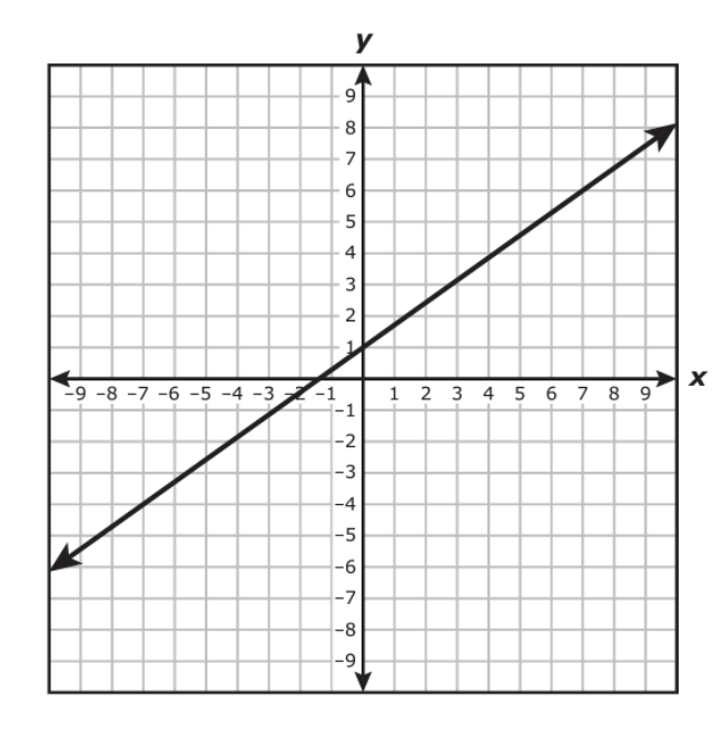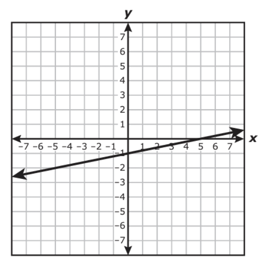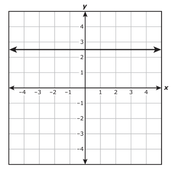 Which statement best represents the equation of the line shown on the grid and its relationship to the x-axis?