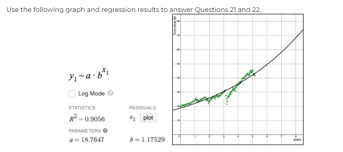 The data points represent a fund’s prices over time. Based on the exponential regression model…