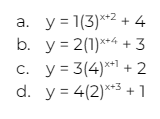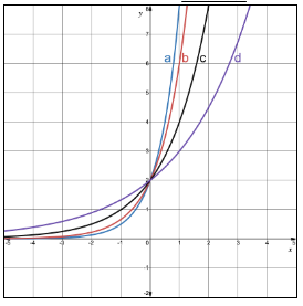 Look at the graph. Which of the four functions has the smallest value for b (Hint: Smallest Growth Factor)?