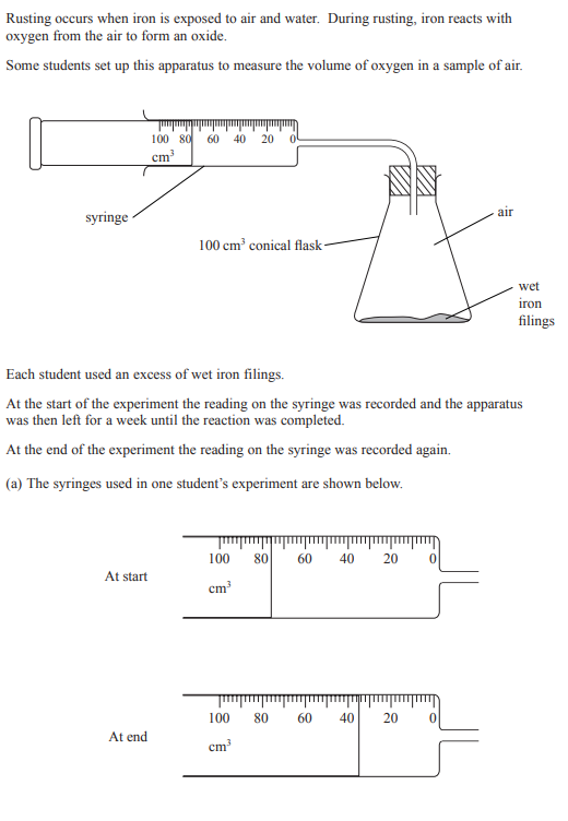 Work out the syringe readings at:the start and the end of the experiment, and calculate the volume of oxygen used up.