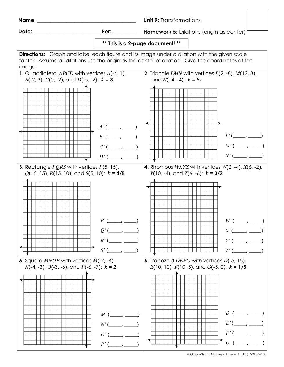Perform the dilation and provide the image points below. BE SURE TO FORMAT YOUR ANSWER CORRECTLY. ( EXAMPLE: (1,-1) ) IF YOU DO NOT FORMAT YOUR ANSWER CORRECTLY YOU WILL NOT RECIEVE CREDIT!!!
