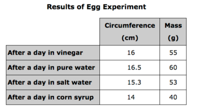 Use the information to answer the question. A student conducted an experiment using an egg, which is actually just one very large cell. He first placed the egg in vinegar. One day later, he observed that the hard outer shell was gone. Now the egg’s outer covering was a balloon-like membrane. He measured the circumference and mass of the egg. He then placed the egg in pure water for a day, salt water for a day, and corn syrup for a day. He recorded the circumference and mass of the egg each day. The results are shown in the table. Which cell structure plays the biggest role in the movement of liquids into and out of the egg?