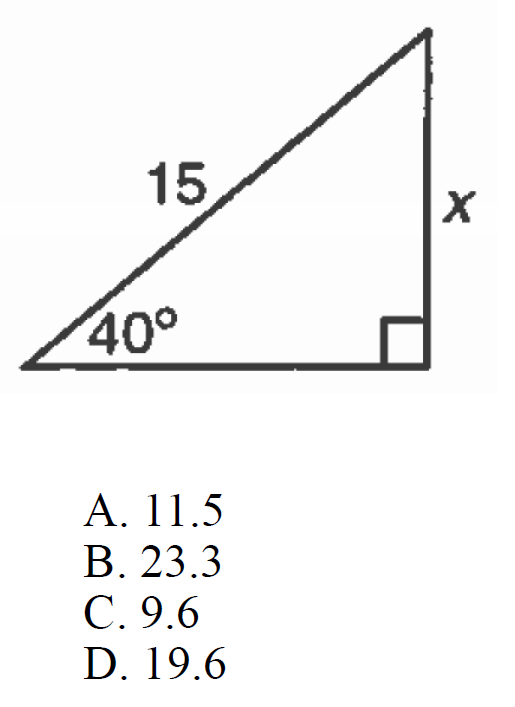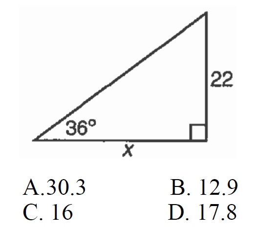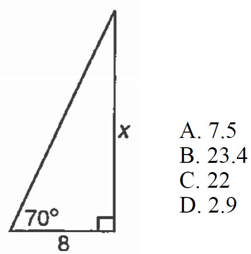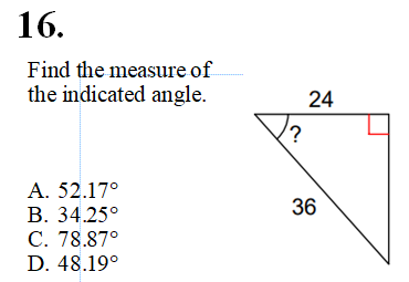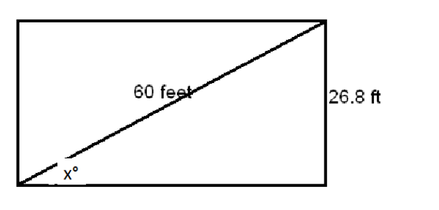 The diagonal of a rectangular lot is 60 feet and one side measures 26.8 feet. What is the value of angle X?
