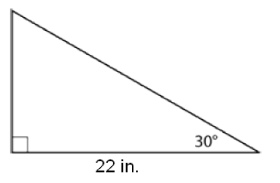 A sheet metal worker needs to cut a piece of metal in the shape shown above. What is the length of the long side of this triangle?