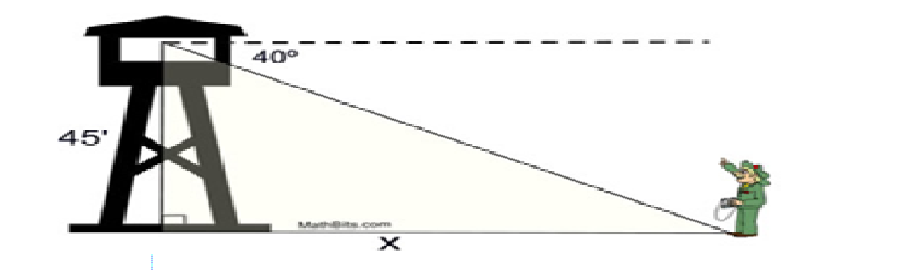 From the top of a fire tower, a forest ranger sees his partner on the ground at an angle of depression of 40 degrees. If the tower is 45 feet in height, how far is the partner from the base of the tower, to the nearest tenth of a foot?