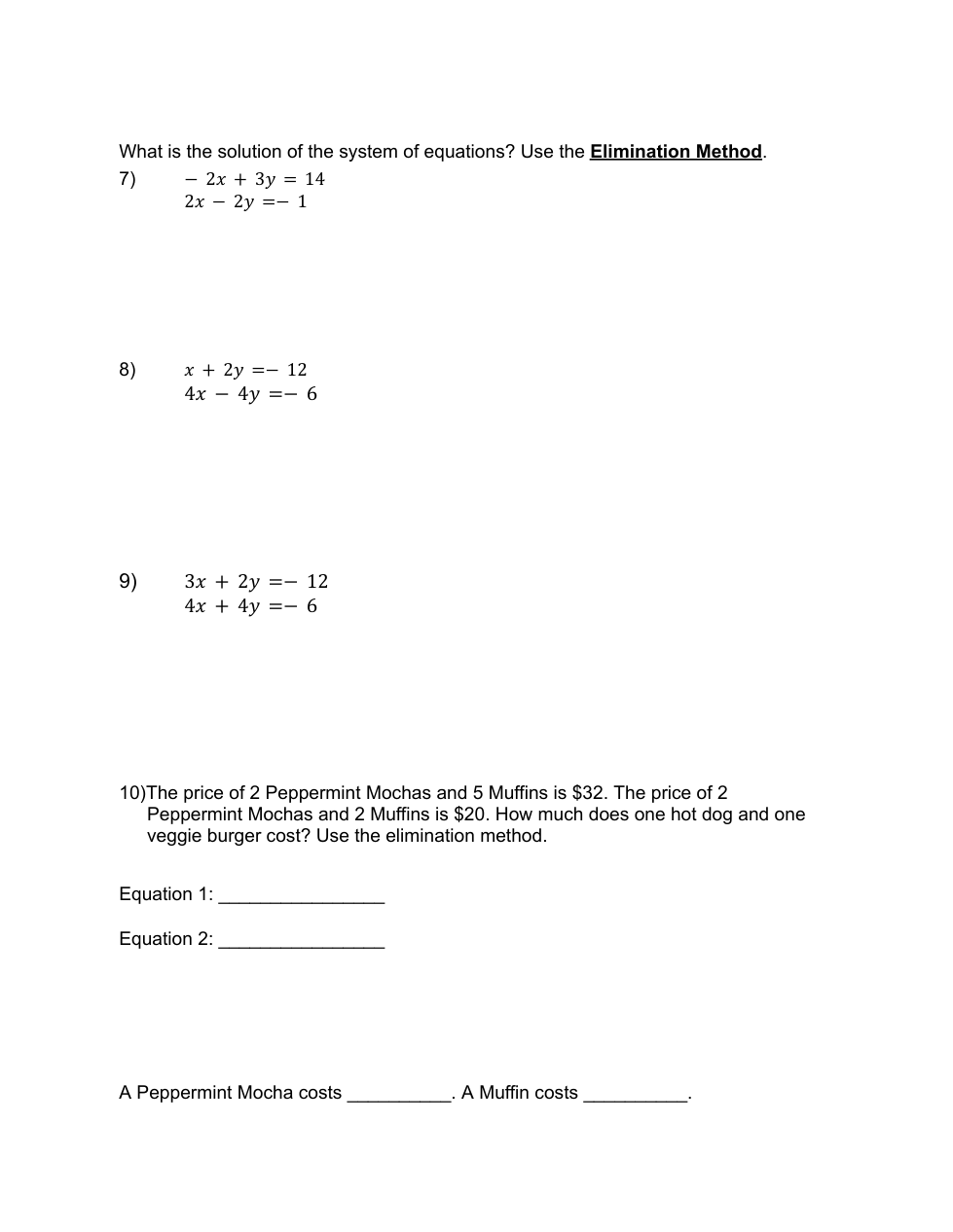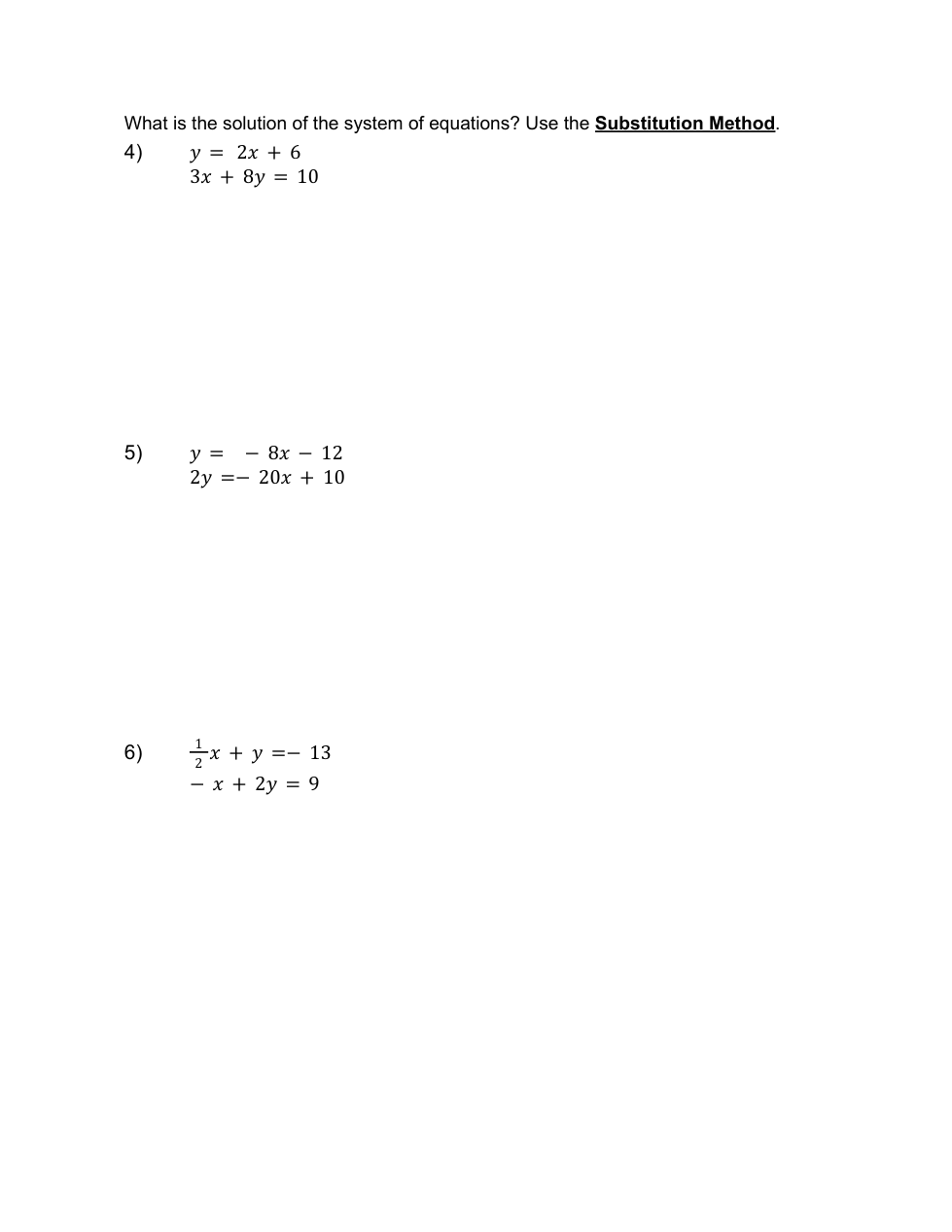 This is a review for solving systems of equations by graphing, substitution, and elimination.