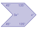 A polygon has 5 sides. The interior angle measures are 115°, 131°, 118°, 130°, and x°. Find the value of x.