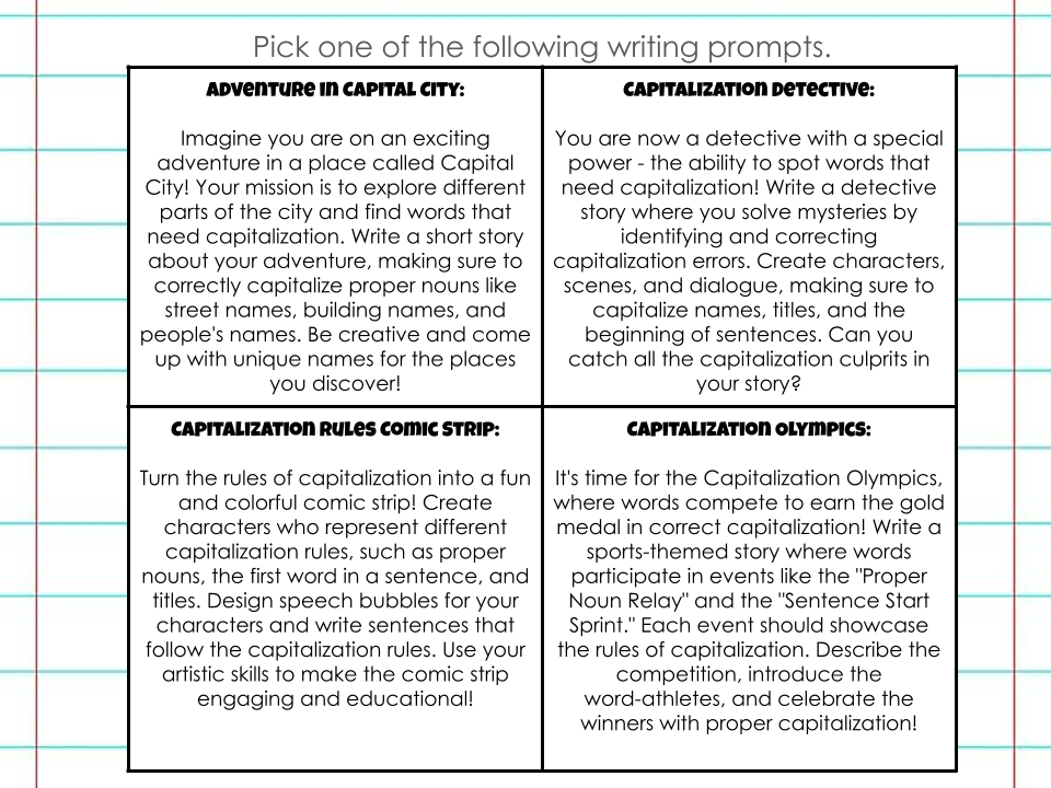 Capitalization Rules Writing Prompts