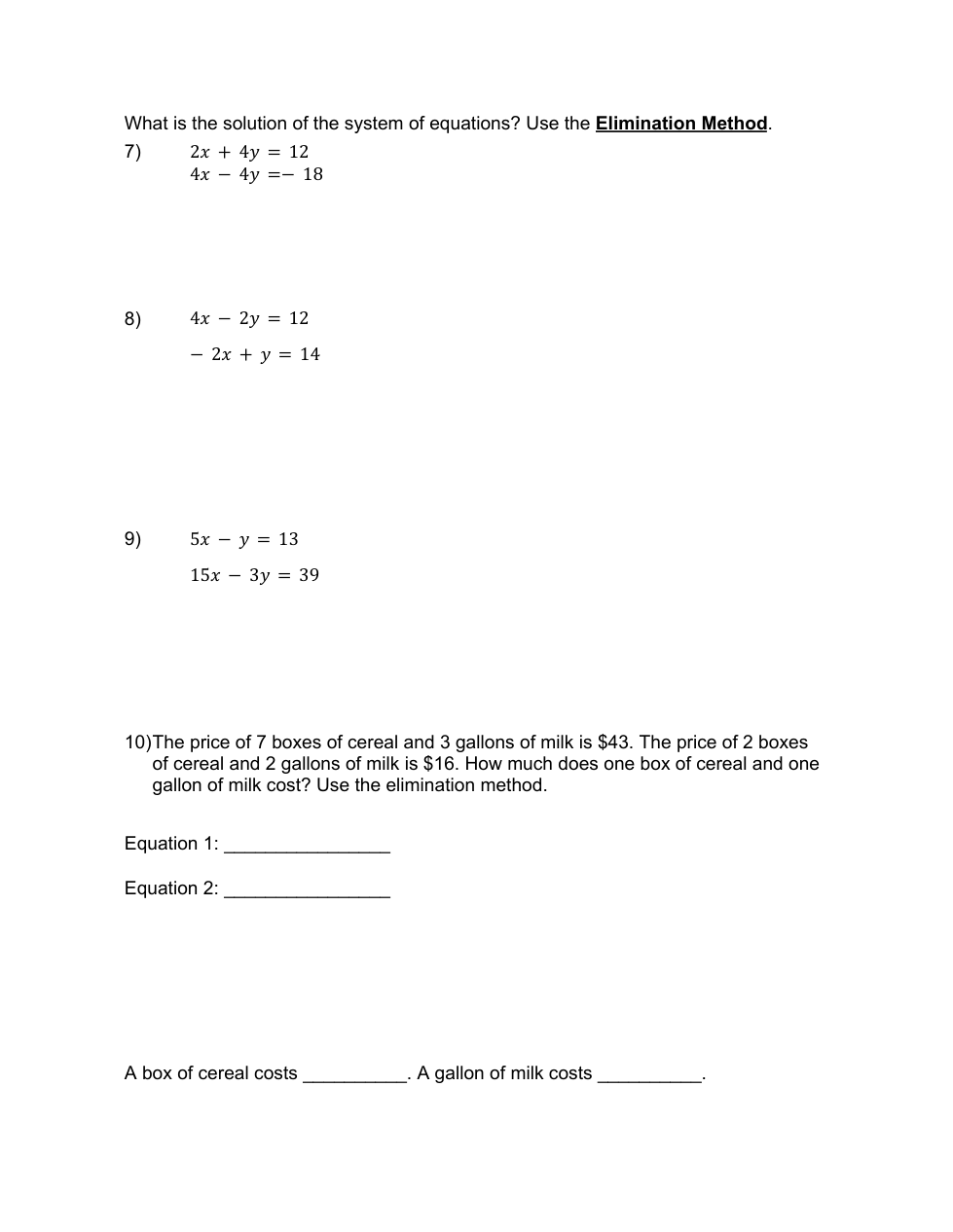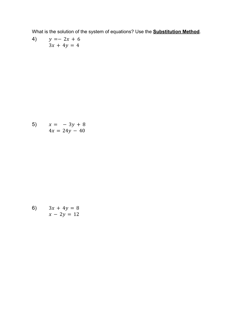 This is a review of solving systems of equations by graphing, substitution, and elimination methods.