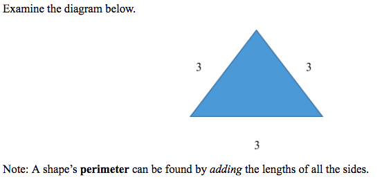 Write an addition expression that can be used to find the perimeter of the triangle.