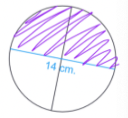 Calculate 1--The diameter is 14 centimeters. What is the area of only the purple shaded region?