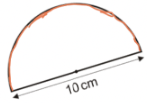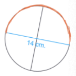 Calculate 2--The diameter is 14 centimeters. What is the length of the outside curved line marked in orange?