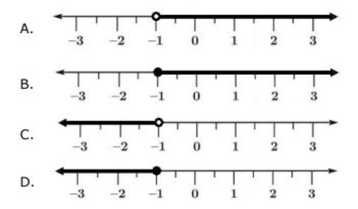 - Which number line shows the solution to the inequality -3x-5<-2 ?