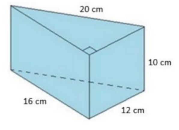 A company designs a cheese mold in the shape of a right triangular prism. A sketch of the mold is shown.
