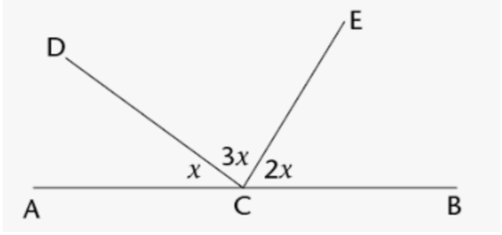Marcus drew three adjacent angles on a line. What must be the measure of ∠ECB?