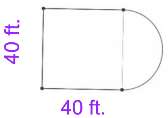 The playground at Mancini Middle School has a play court shaped like a square joined by a semicircle.