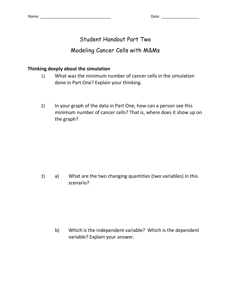 What was the minimum number of cancer cells in the simulation done in Part One? Explain your thinking.