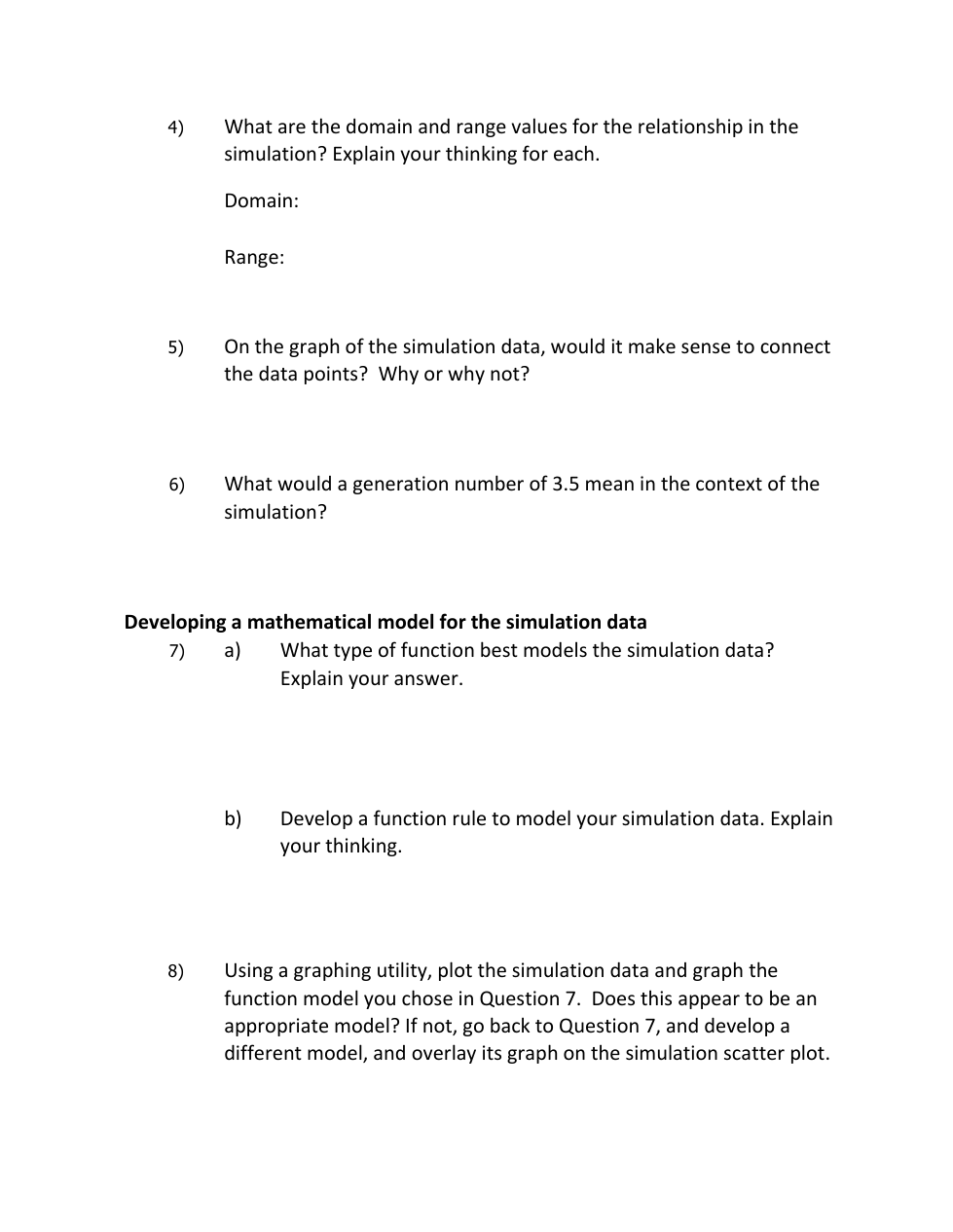 On the graph of the simulation data in #3, would it make sense to connect the data points? Why or why not?