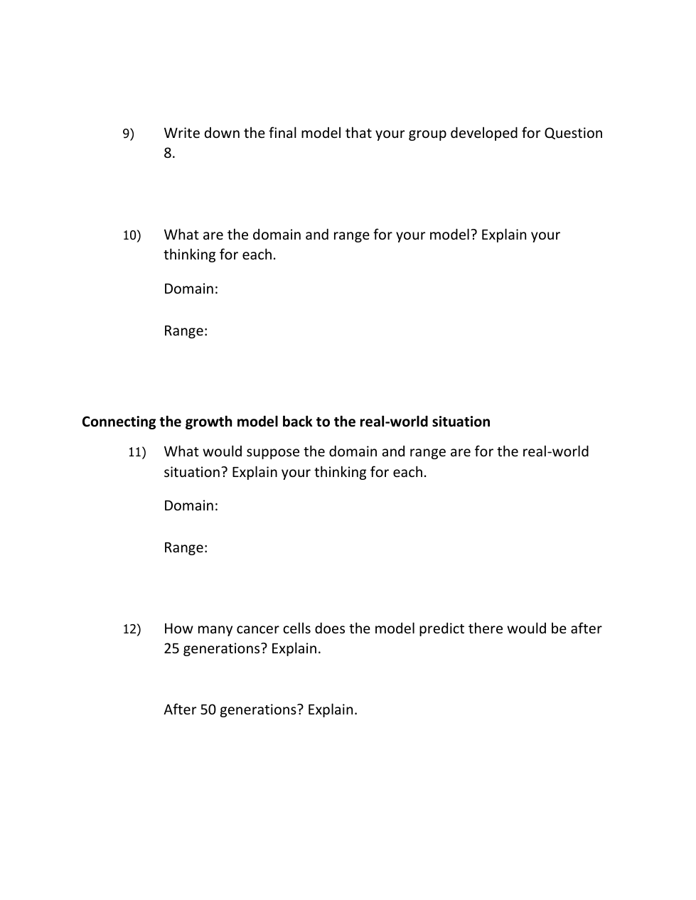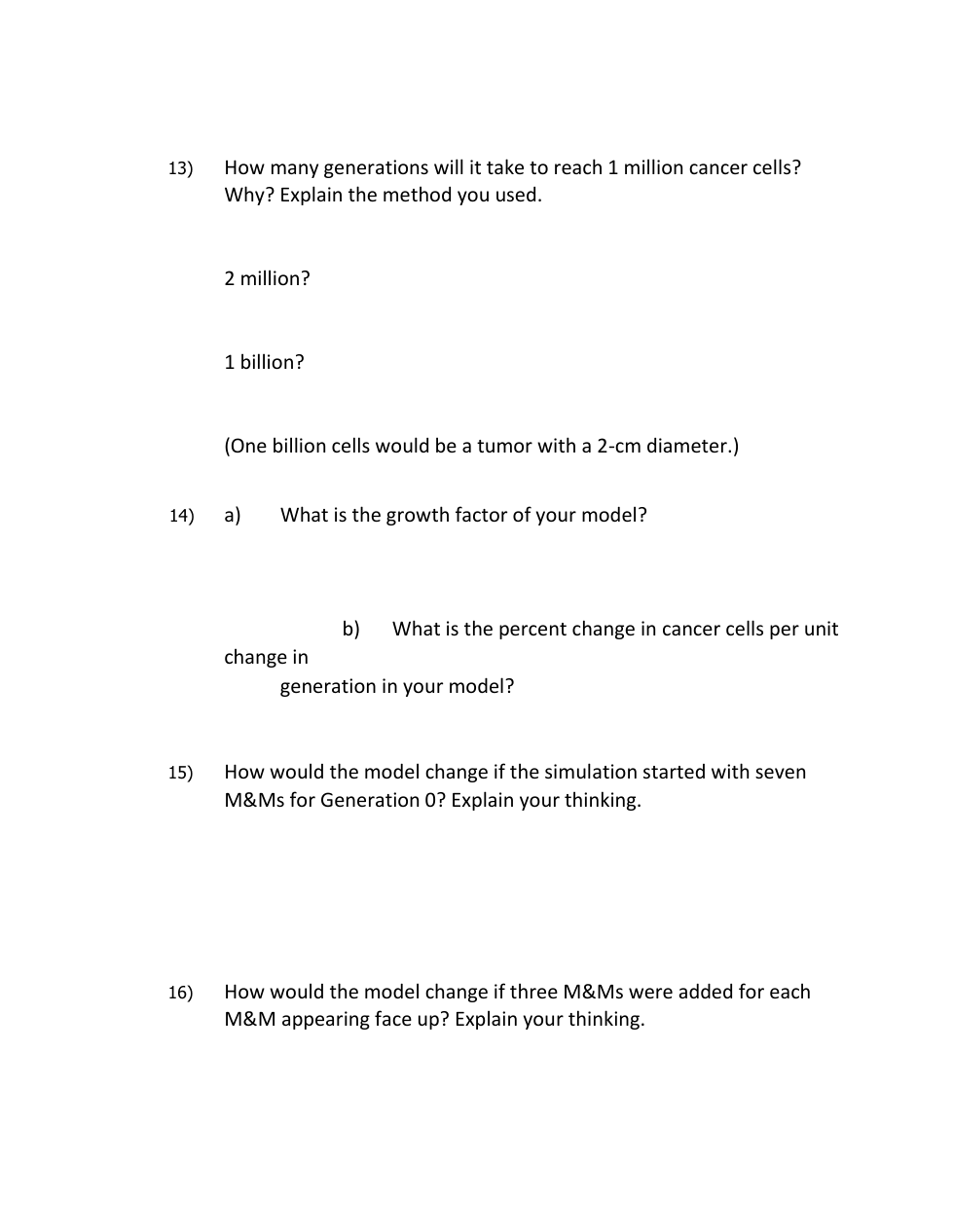 How many cancer cells does the model predict there would be after 50 generations? Explain.