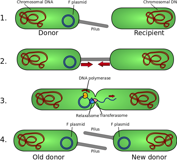 (plasmids) between two bacteria |