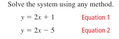 You may choose to solve the system by graphing, algebraically with substitution or elimination.