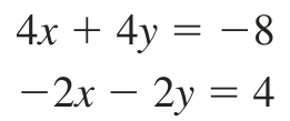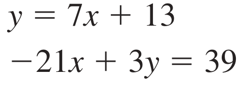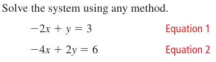 Use only the slopes and y-intercepts of the graphs of the equations to determine the number of solutions of the system.