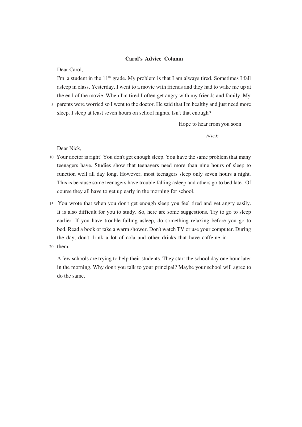 Carol's Advice Column - Reading Comprehension