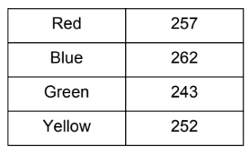 The table shows the color and number of marbles in a jar.