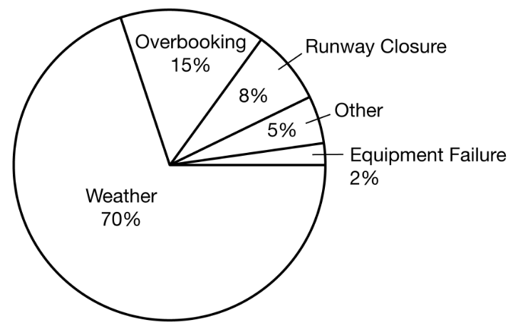 The following pie chart summarizes the results of a survey given to airlines about the primary reason for flight delays.