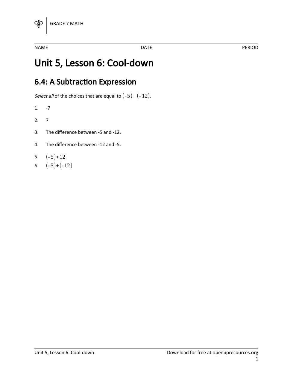 Unit 5 Lesson 6 Cool Down