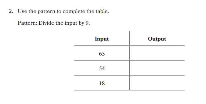 Use the pattern to complete the table.