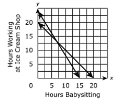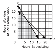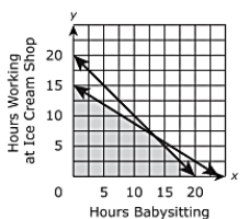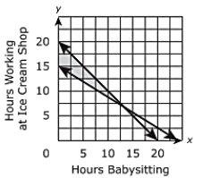 Jada would like to earn at least $120 per month. She babysits for $5 per hour and works at an ice cream shop for $8 per hour. Jada cannot work more than a total of 20 hours per month. Let x represent the number of hours Jada babysits and let y represent the number of hours Jada works at the ice cream shop.