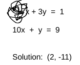 Evelyn played with her hamster pet while doing her homework. The mischievous hamster bit out one of the coefficients of x in the system of linear equations. But Evelyn was not worried since the solutions were on the worksheet. She knew exactly what to do to get the missing number.