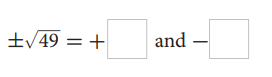 Below is an example how to solve an quadratic equation by taking a square root. Fill the blanks to complete the problem.