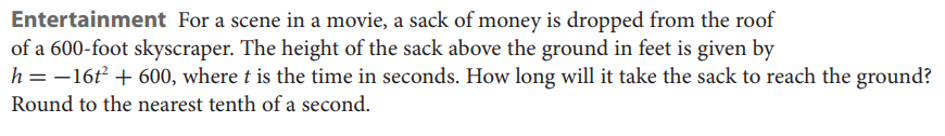 Learning Target: Students will be able to solve quadratic equations that model real-world situations.