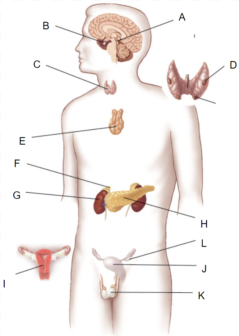 E | arrow_right_alt | produces hormones that regulate the body's metabolic rate, growth and development; depends on a good supply of iodine from our diet to function |