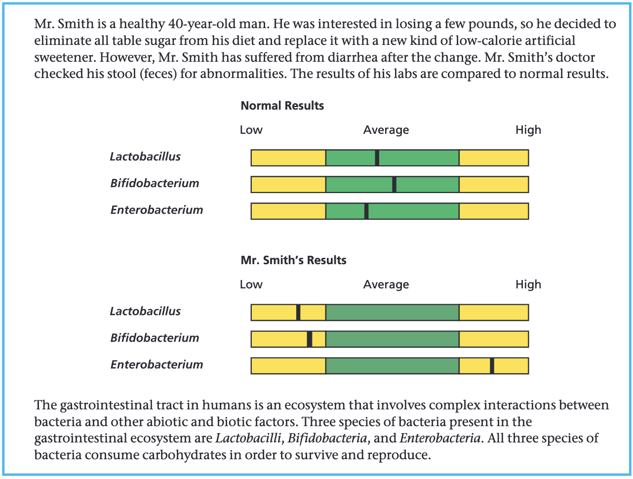 Which trial in the study provides the best evidence that the artificial sweetener functions as a low-calorie sugar substitute (i.e., does not provide usable carbohydrates) to Mr. Smith's intestinal bacteria population?