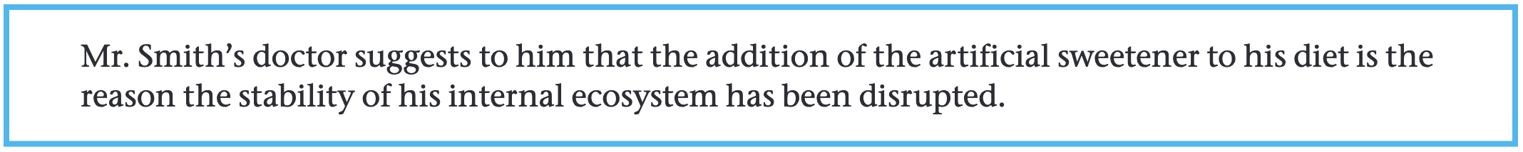 Based on the change observed after the introduction of the sweetener to Mr. Smith's diet, which of these claims would it be reasonable to investigate?