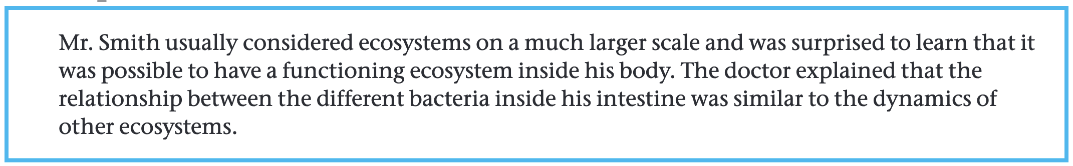 Which example from a different ecosystem best illustrates the situation happening inside Mr. Smith's intestine?