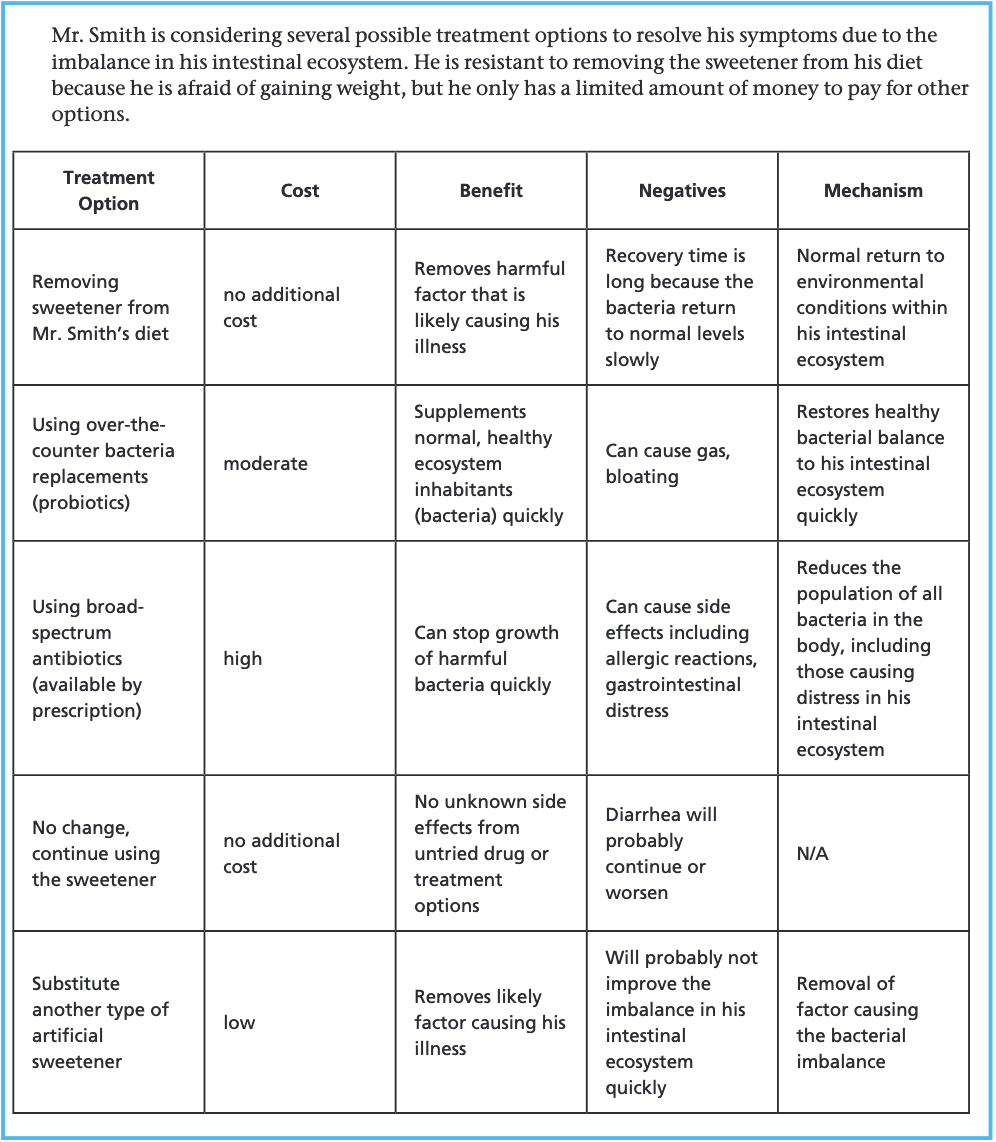 Evaluate the treatment options. Explain which two treatment options you think are best and the reasons for your choices. Describe how important you considered each of the criteria listed (cost, benefit, negatives, mechanism) in deciding which treatment options were best.