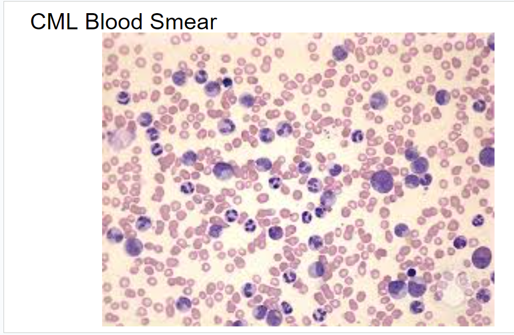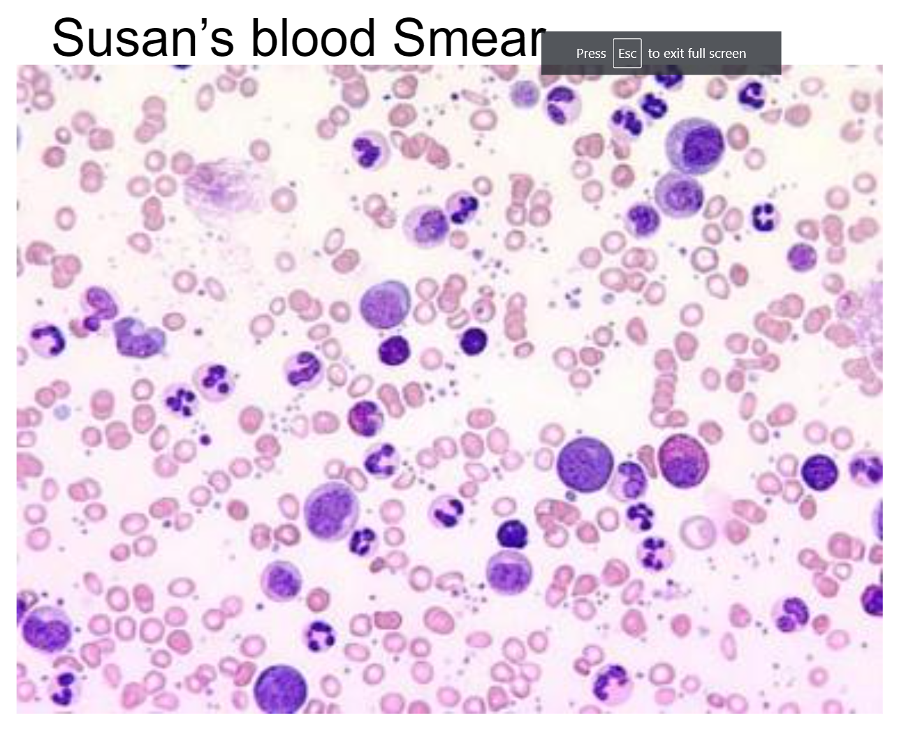 The CML blood smear contains a lot of white blood cells (larger darker purple spots). Does this look similar to Susan's blood smear?