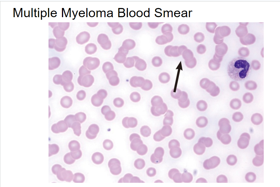 In multiple myeloma blood smear the red blood cells are clumped together. Does this look similar to Susan's blood smear?