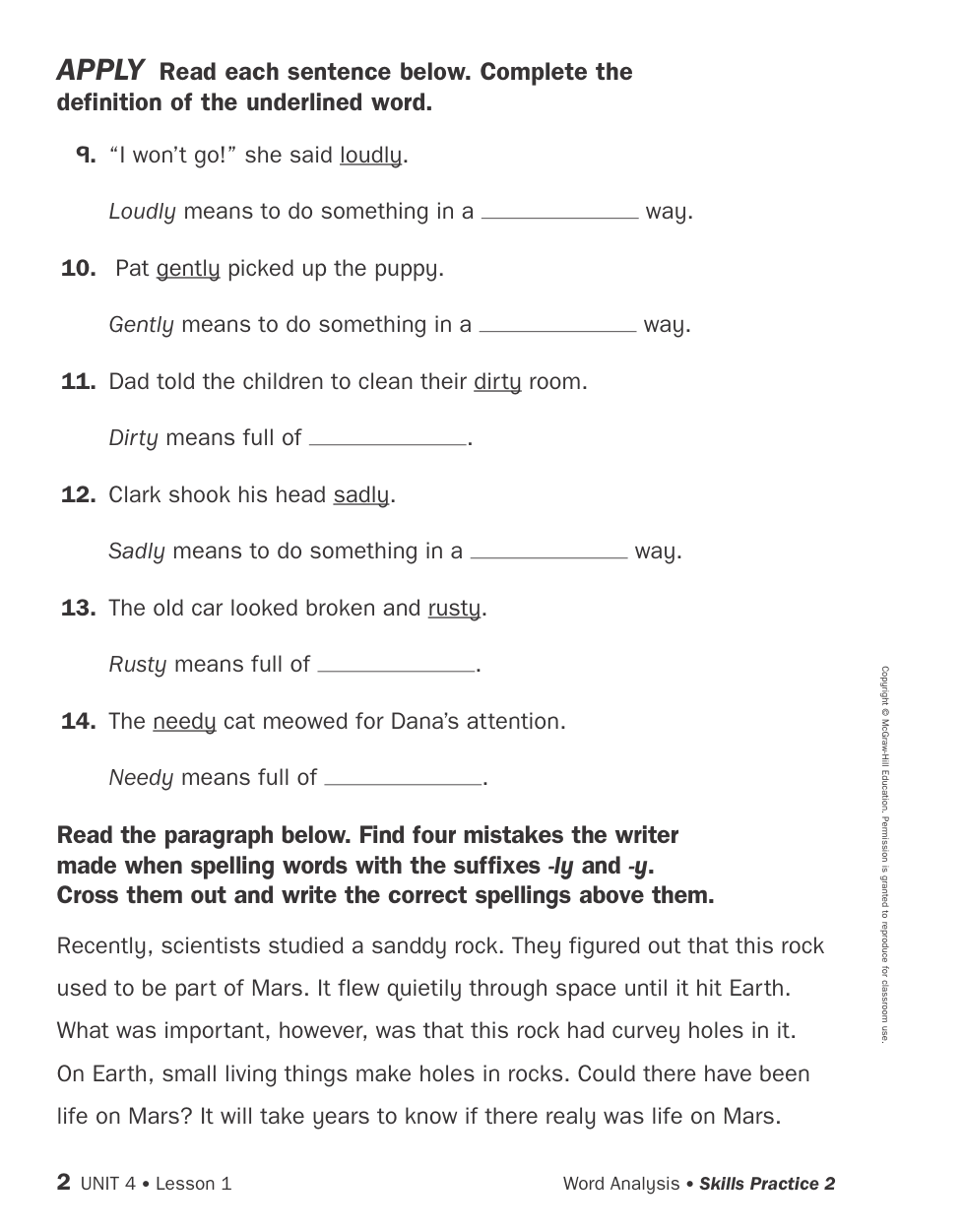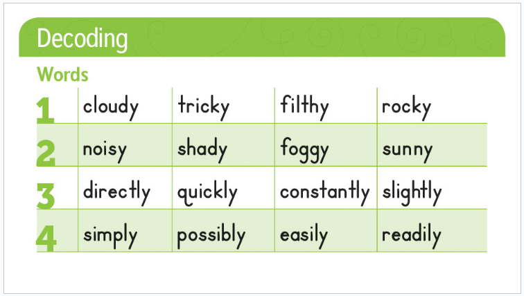 Which words contain the -y or -ly suffix?