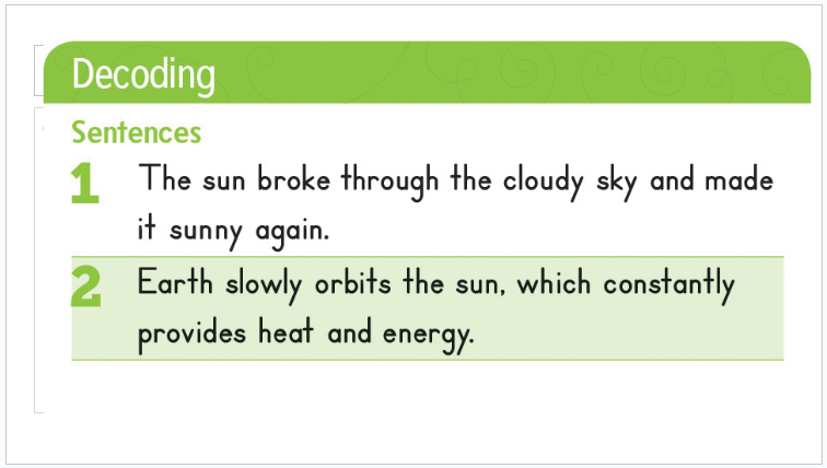 Write a sentence using a word from row 2.